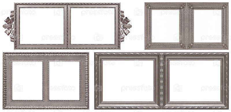Набор двойных серебряных рамок (диптих) для картин, зеркал или фотографий, изолированных на белом фоне