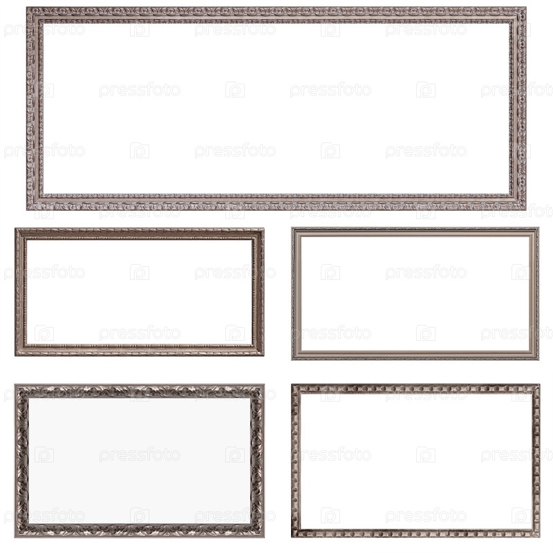 Набор панорамных серебряных рамок для картин, зеркал или фотографий, изолированных на белом фоне