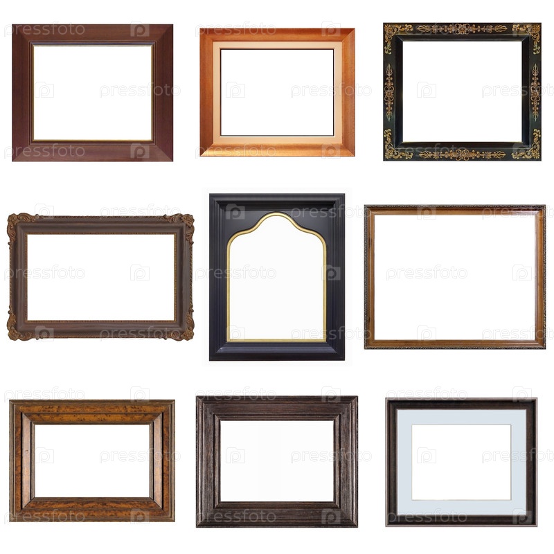 Набор деревянных рамок для картин, зеркал или фотографий изолированный на белом фоне