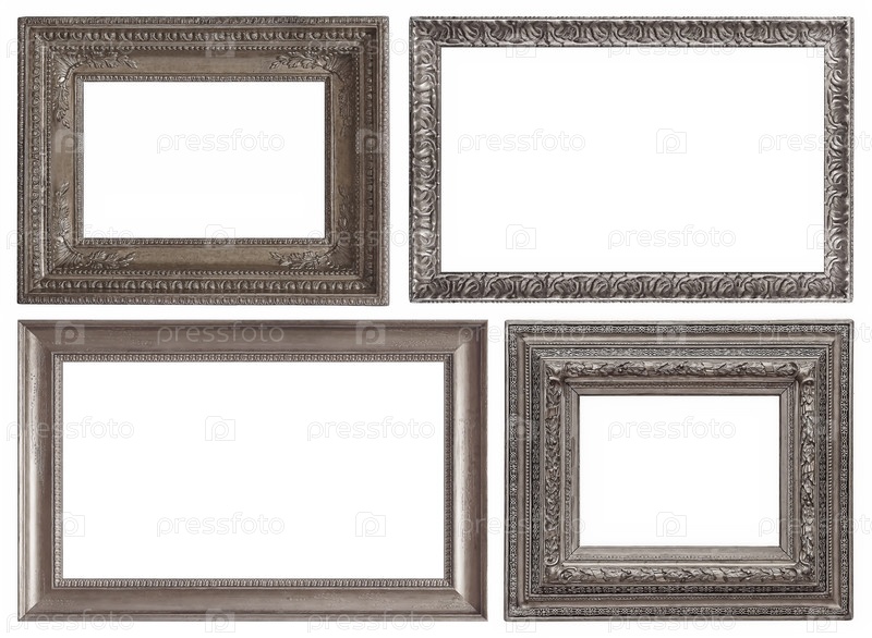 Набор серебряных рамок для картин, зеркал или фотографий изолированный на белом фоне