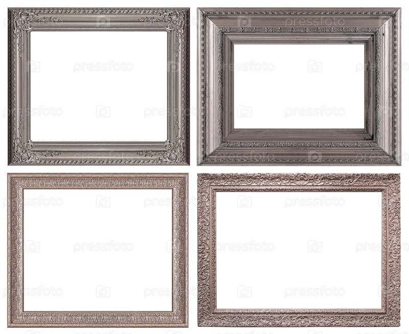 Набор серебряных рамок для картин, зеркал или фотографий изолированный на белом фоне