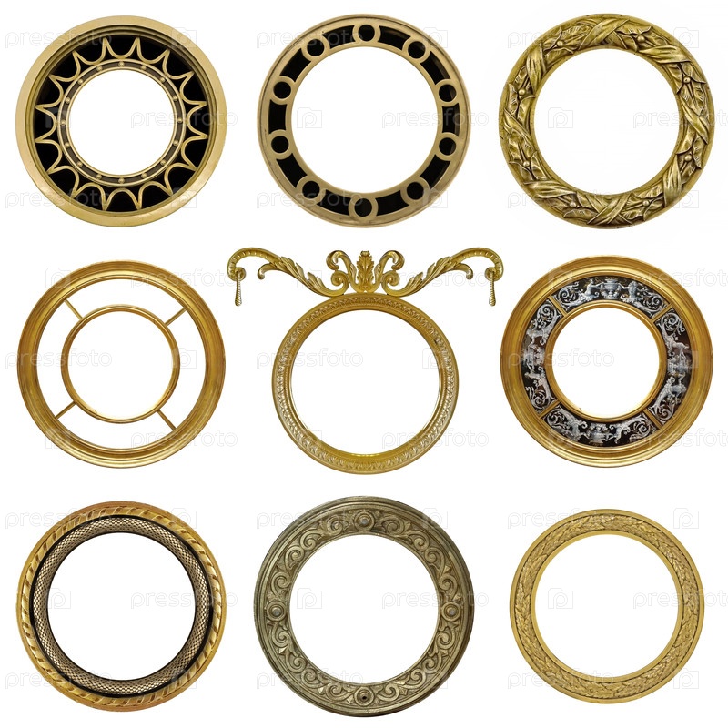Набор золотых рамок для картин, зеркал или фотографий, изолированных на белом фоне