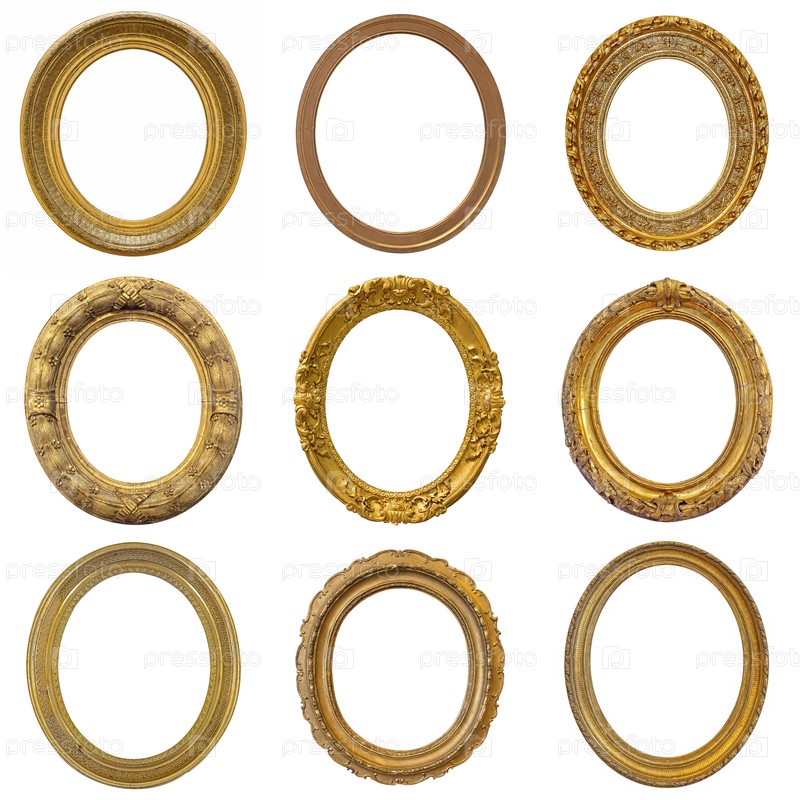 Набор золотых рамок для картин, зеркал или фотографий, изолированных на белом фоне