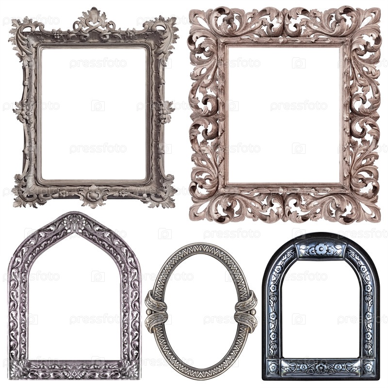 Набор серебряных рамок для картин, зеркал или фотографий изолированный на белом фоне