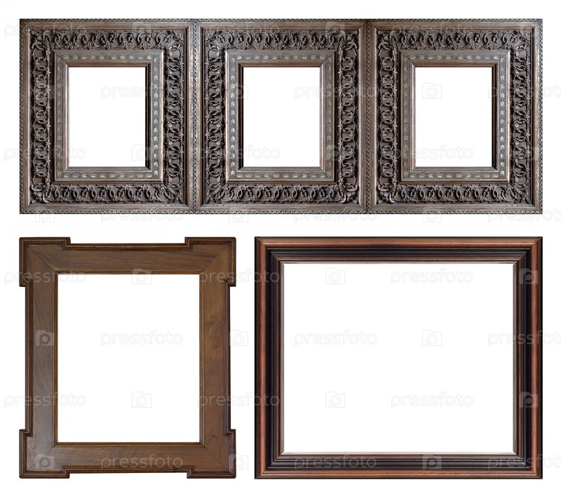 Набор деревянных рамок для картин, зеркал или фотографий изолированный на белом фоне
