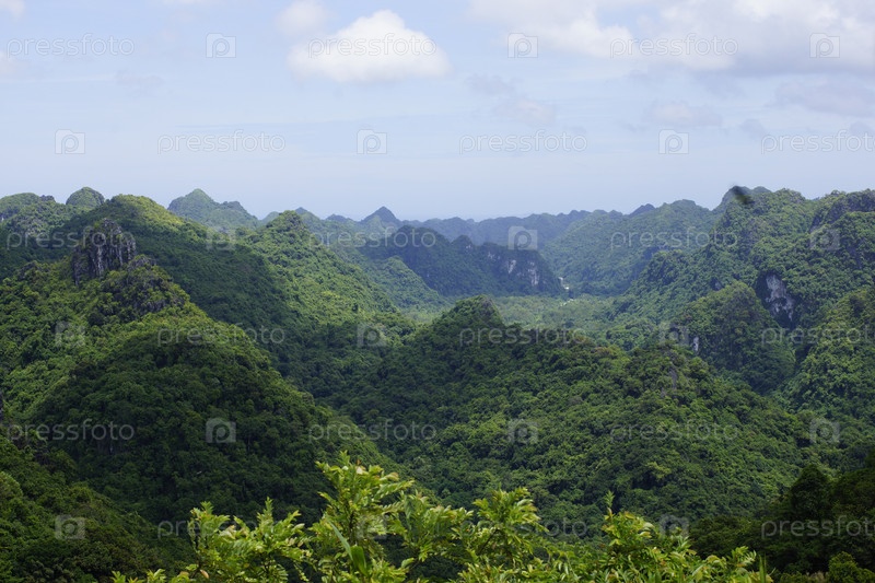 Покрытые лесом невысокие горы в заповеднике Катба, Вьетнам