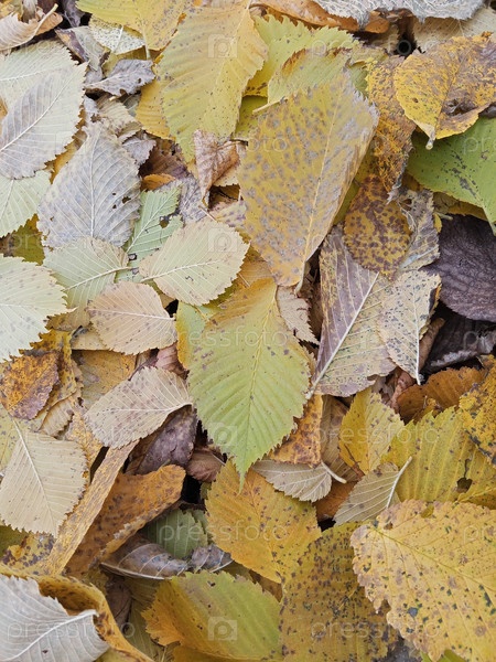 Ковер из желтых опавших вязовых листьев