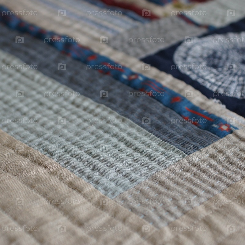 Ручная стежка одеяла в серо-голубых тонах