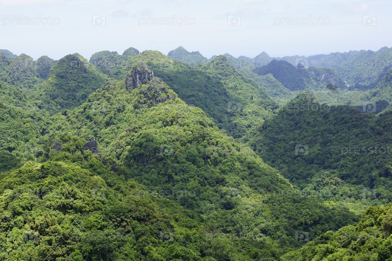 Покрытые лесом невысокие горы в заповеднике Катба, Вьетнам