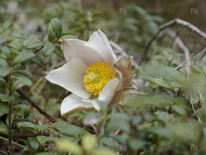 Цветущий прострел сон-трава в пасмурную погоду
