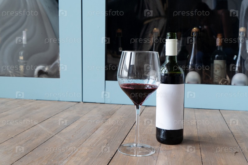 Элегантная бутылка красного вина и стекло установлены на красивой деревянной поверхности, идеально подходят для любого случая