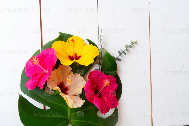 Тропические цветы и листья, фоне летних каникул