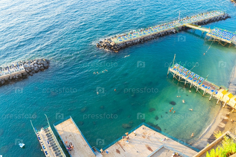Вид с воздуха на Сорренто, южная Италия, ретро тонированный пляж