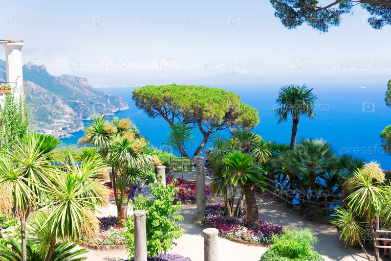 Вид на воды Тирренского моря и побережье Амальфи Италия, ретро-тон