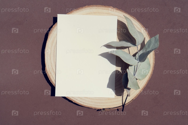 Эвкалипт в стиле фондовая сцена в коричневых тонах земли с макетом поздравительных открыток, цвет года 2025 мока мусс