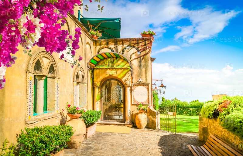 Фонтан в парке деревни Равельо, побережье Амальфи Италии