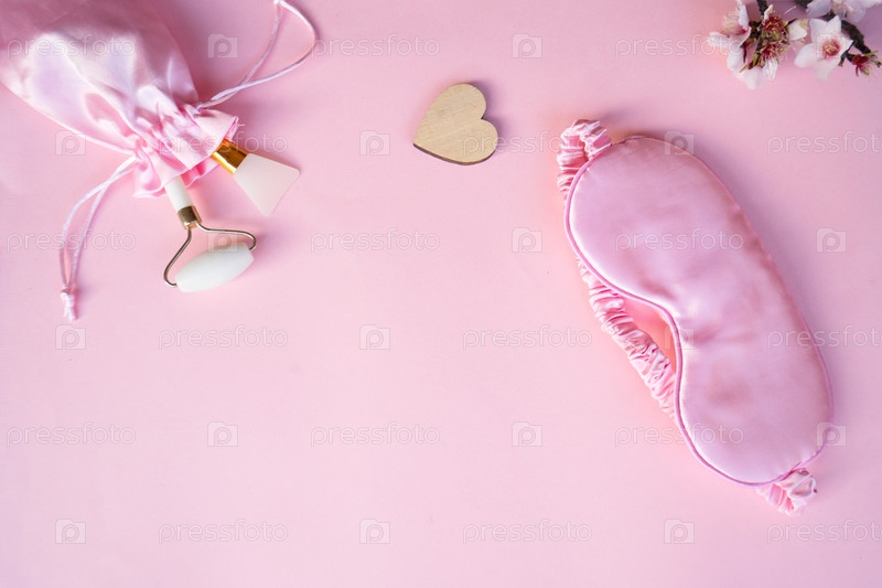 Весенние цветы с спальной маской, концепция расстройств сна и бодрствования, терапия бессонницы, проблемы со сном и лишения