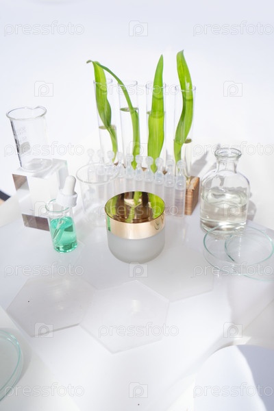 Лабораторно протестированный крем для лица в белом стеклянном контейнере,