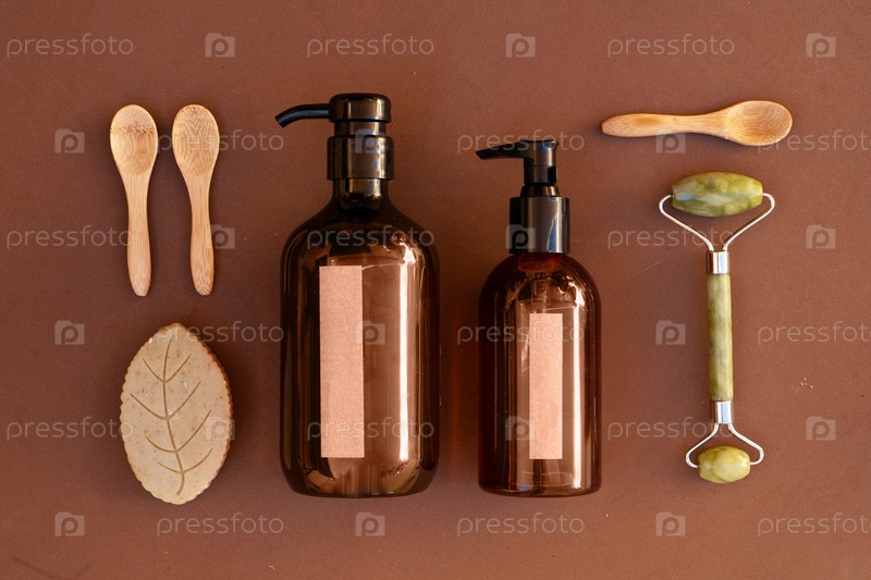 Естественные косметические средства, установленные на земных тонах коричневый фон, цвет года 2025 мока мусс