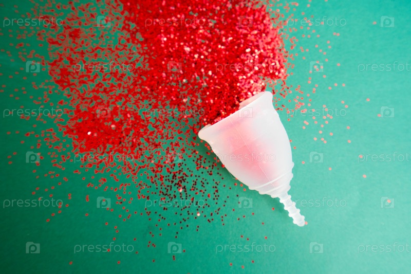 Менструальная чашка на зеленом фоне, экологически чистое и нулевое решение отходов