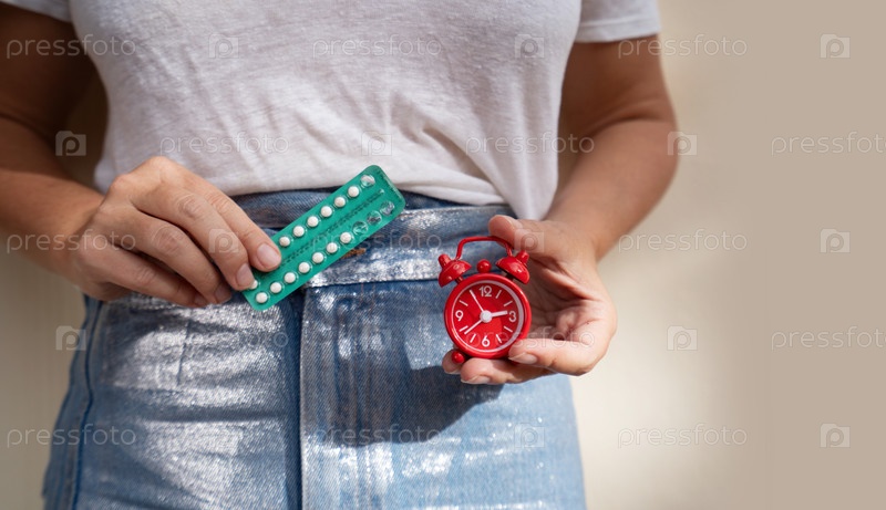 Женщина, держащая 21-дневные оральные противозачаточные таблетки, контроль над рождаемостью и концепция планирования беременности