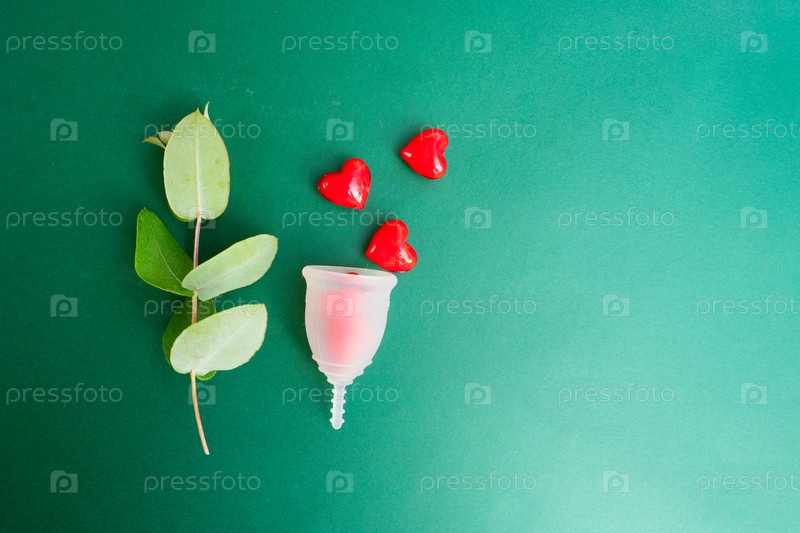 Менструальная чашка на зеленом фоне, экологически чистое и нулевое решение отходов