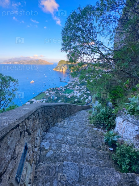 Вид на красивую гавань Марина-Гранде сверху, остров Капри, Италия, формат веб-баннера