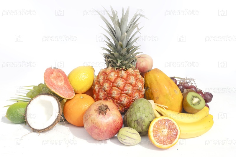 Лето тропических фруктов над белым миксом