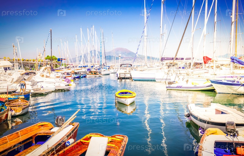 Порт Неаполя и вулкан Везувий летом, Италия
