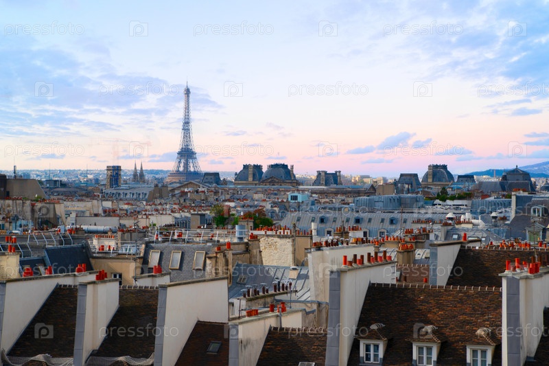 Горизонт парижских городских крыш с Эйфелевой башней сверху, Франция