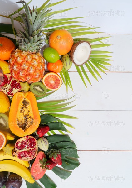 Лето тропических фруктов над белым миксом