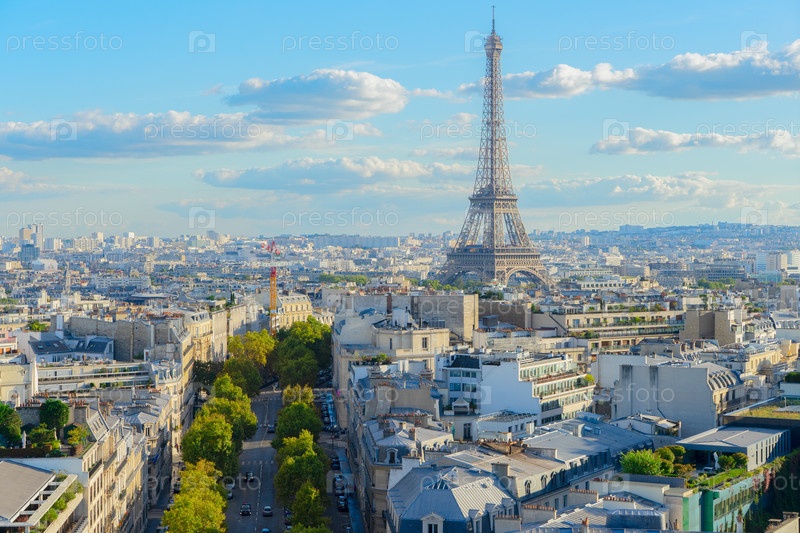 Панорамный вид на знаменитую Эйфелеву башню и парижские крыши, Париж Франция