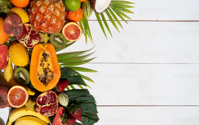Лето тропических фруктов над белым миксом
