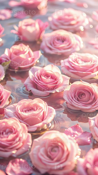 Розовые розы грациозно плавают на спокойной воде в солнечный день