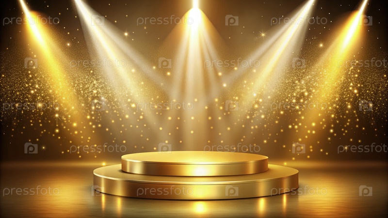 Отражающийся золотой подиум, освещенный теплыми световыми фонарями сцены на церемонии награждения