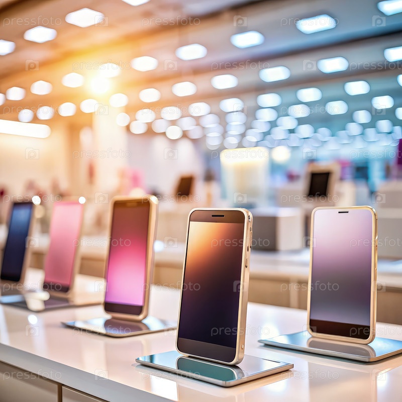 Магазин бытовой техники демонстрирует изящные дисплеи смартфонов в дневное время