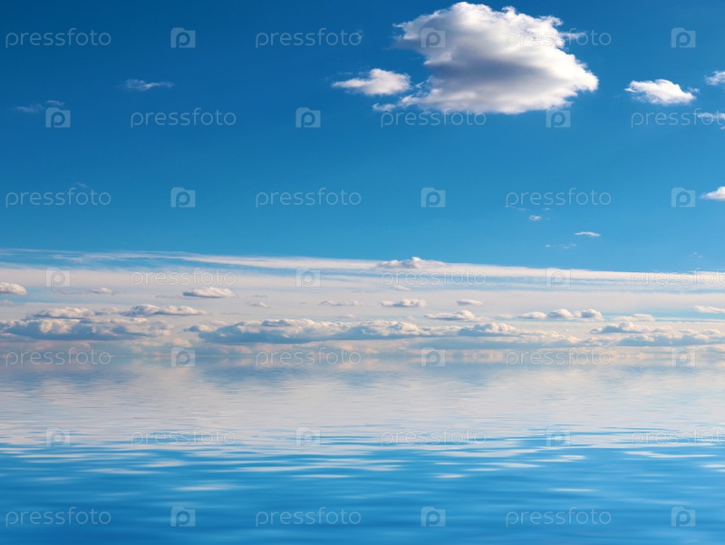 Прекрасное облачное небо отражается на спокойной поверхности моря