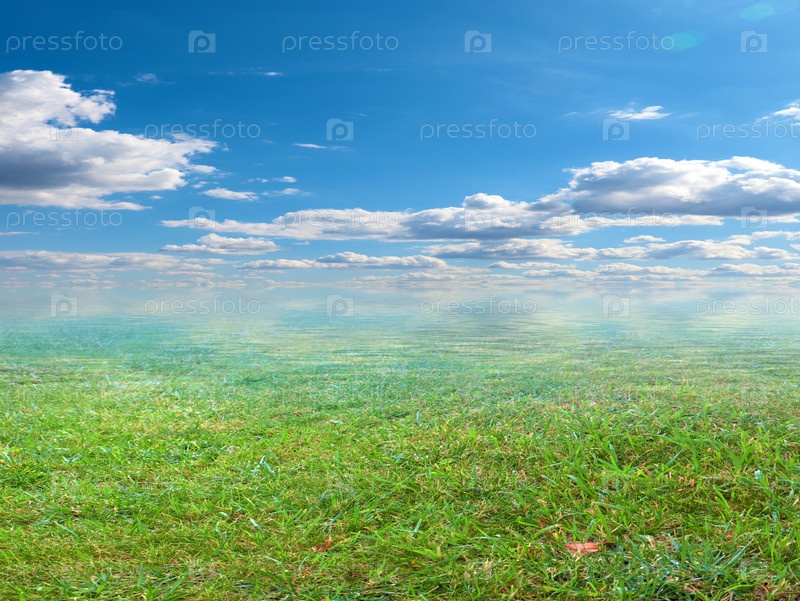 Красивое облачное небо над болотным лугом
