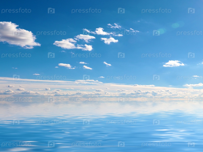 Прекрасное облачное небо отражается на спокойной поверхности моря