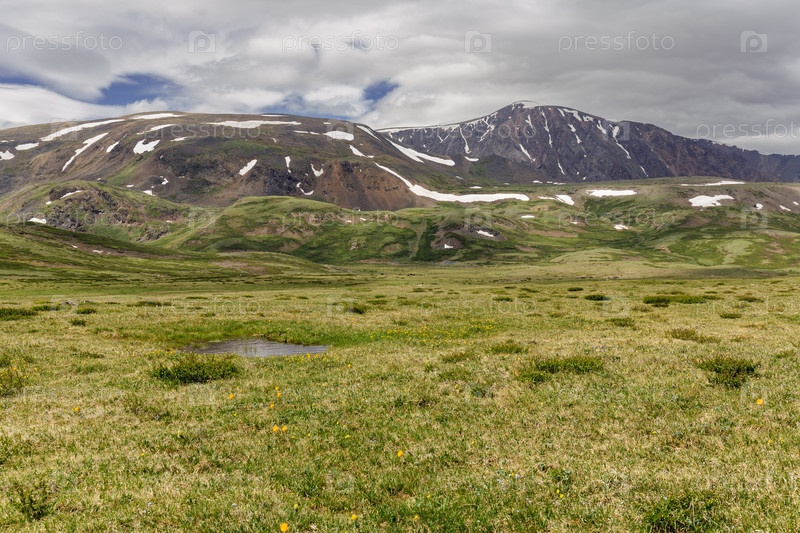 Красивый вид на зеленую травянистую долину в пасмурный день