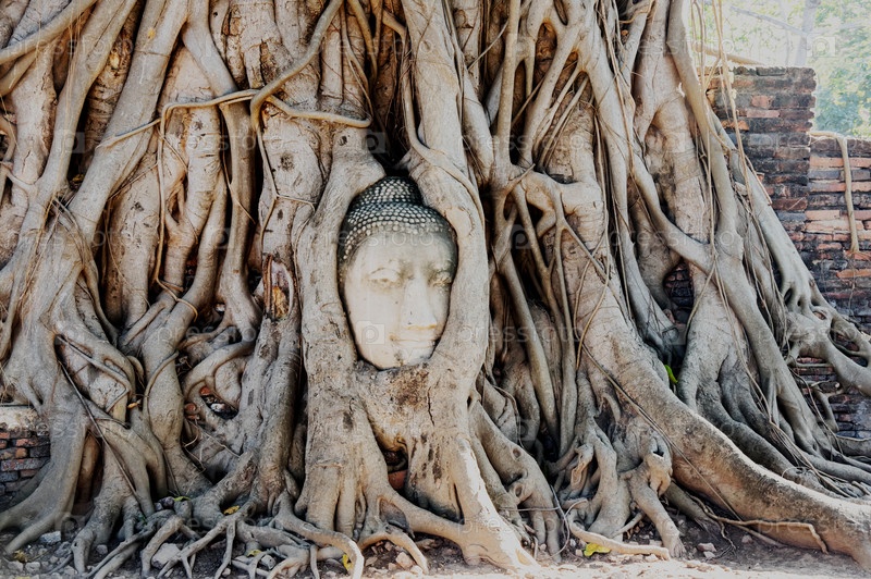 Каменная голова Будды в храме Wat A Prha Mahathat Temple