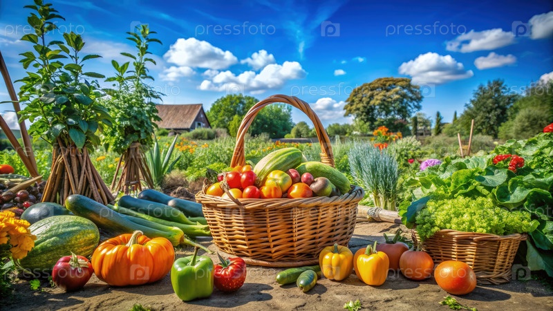 Яркий овощный сад, изобилующий свежими продуктами под солнечным небом