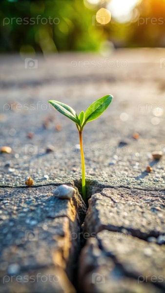 Устойчивое саженец прорастает из трещины в бетоне во время теплого дня, демонстрируя стойкость природы в городской среде