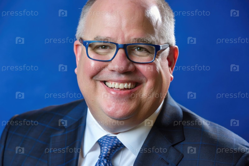 Профессиональный бюст мужчины с пушистой светлой кожей в костюме на синем фоне