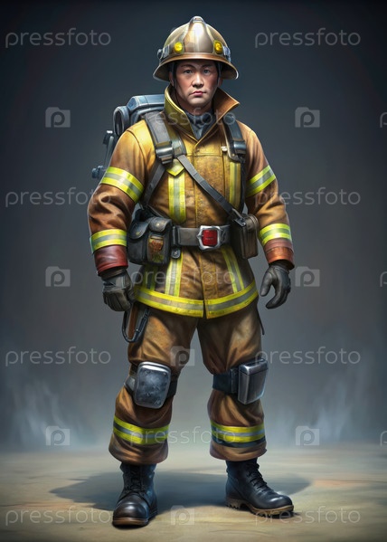 Японский пожарный в Full Gear Готов к действию в ясный день