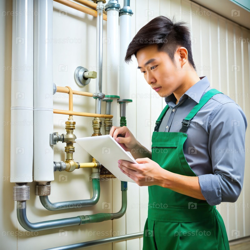 Служащий комнаты проверяет стандартную шкалу в зоне обслуживания