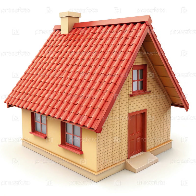 Очаровательный маленький дом с красной крышей и покрашенными стенами под ярким дневным светом