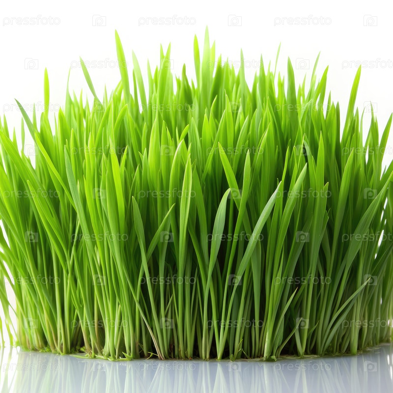 Плодородная зеленая трава, живо растущая под ярким солнечным светом на белом фоне