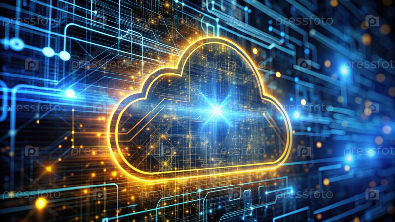 Футуристическая цифровая облачная технология с светящимися схемами в технологической среде. генеративный ИИ
