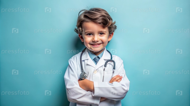 Милый молодой доктор, уверенно улыбающийся на синем фоне